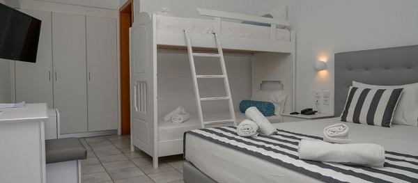 Хотел Акти 4* на 30 метри од песочна плажа. Има подземен премин до прекрасната плажа со ситен песок и постепено задлабочување на водата. Секоја соба има еден дупол кревет и два единечни кревети на спрат, и една соба има еден дупол кревет и два единечни кревети, wi-fi, тв, клима уред, мини фрижидер, телефон купатило со вц, фен, крпи големи за на плажа и туширање и мали за лице. Има 2 ресторани за доручек со поглед на море и ресторан за вечера со поглед на море. Приватна плажа со лежалки и чадори за гостите од хотелот кои се користат со нарачка на пијалок. Бар покрај базен, бар на плажа, безжичен интернет на плажа. Базен отворен со посебен дел за деца. Простории за друштвени игри, пинг понг, цртање, лифт. Покриен паркинг за возила, мини маркет, сеф, 24 часа рецепција и перална.