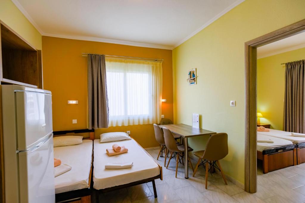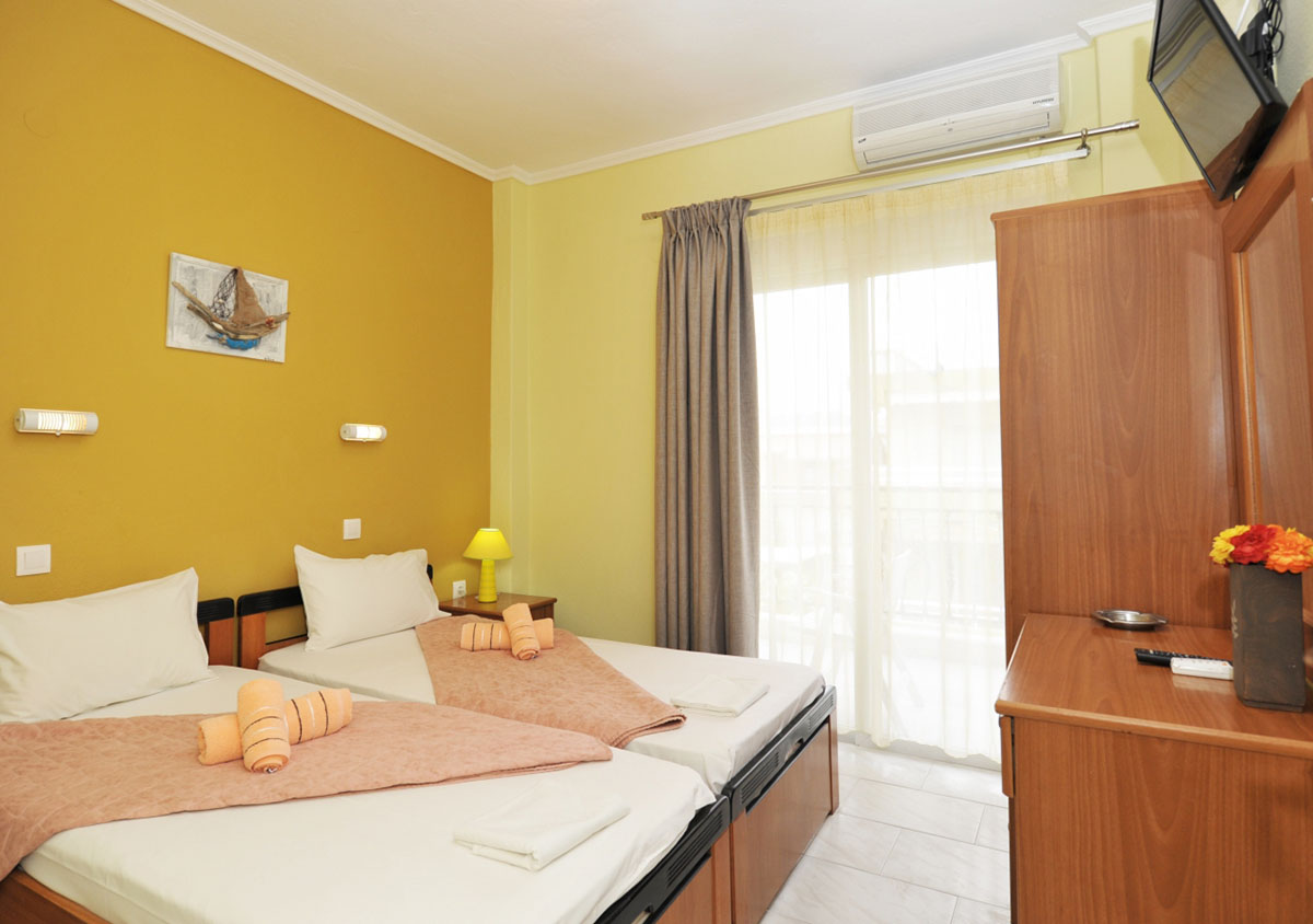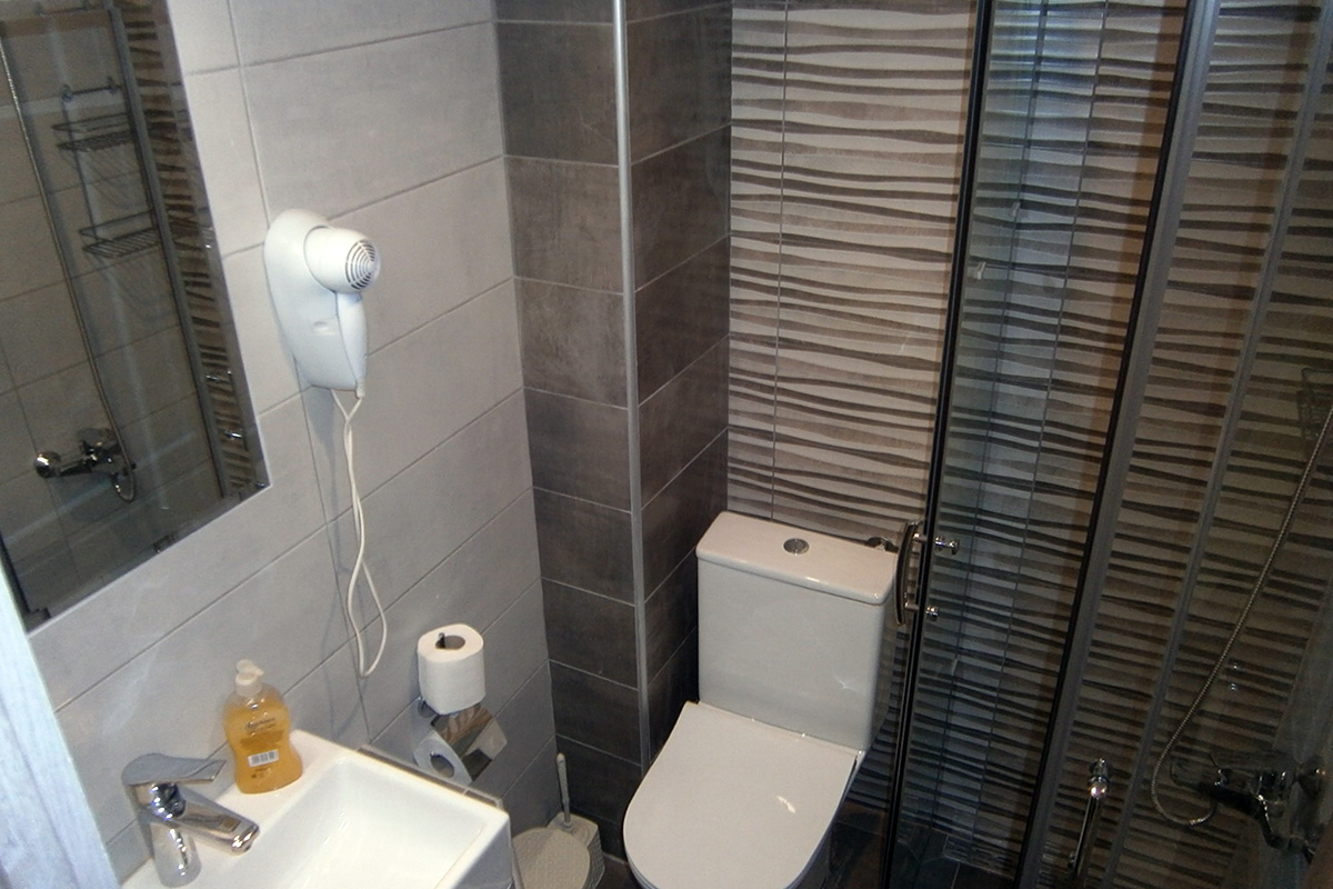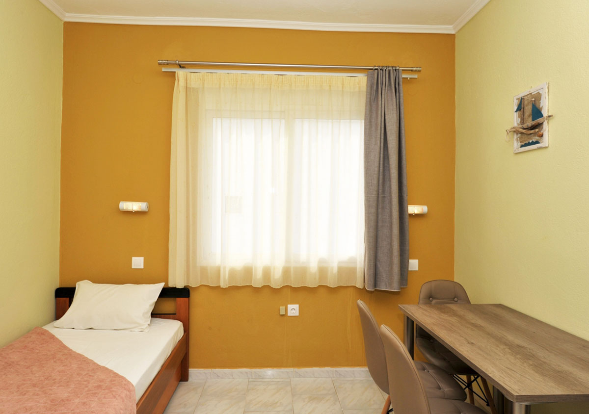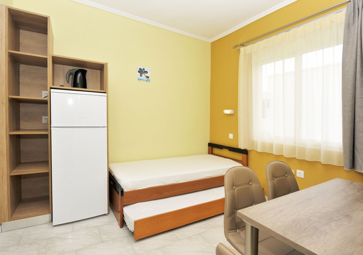- Бр. 302 (трикреветно студио) на 3 кат. Страничен поглед кон море. Три единечни кревети во иста просторија со кујната.