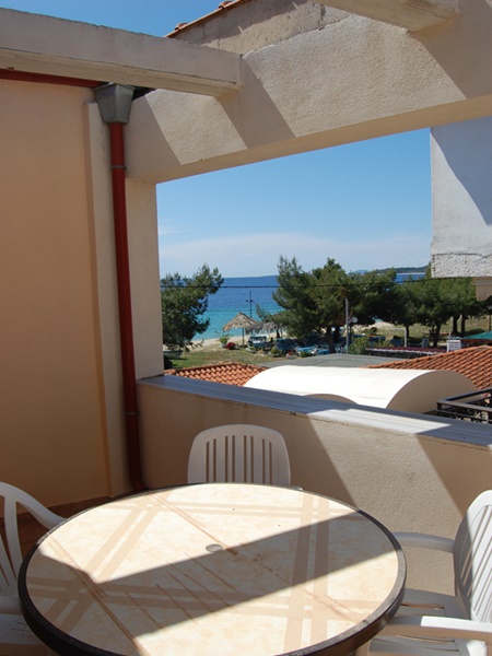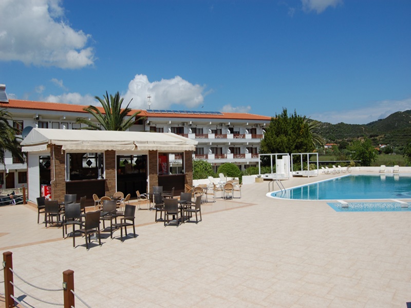 Се наоѓа на сама плажа во склоп на хотелот Toroni Blue Sea. Студијата и апартманите за 2 – 4 лица во понудата се на приземје, прв и втор кат. Едните се со страничен поглед на море, а другите со поповолна цена се со постар намештај и без поглед на море. Сите имаат TV и клима вклучена во цената . Гостите можат да го користат базенот, детскиот базен и паркинг од хотелот. Можна е доплата на полупансион во хотелот.