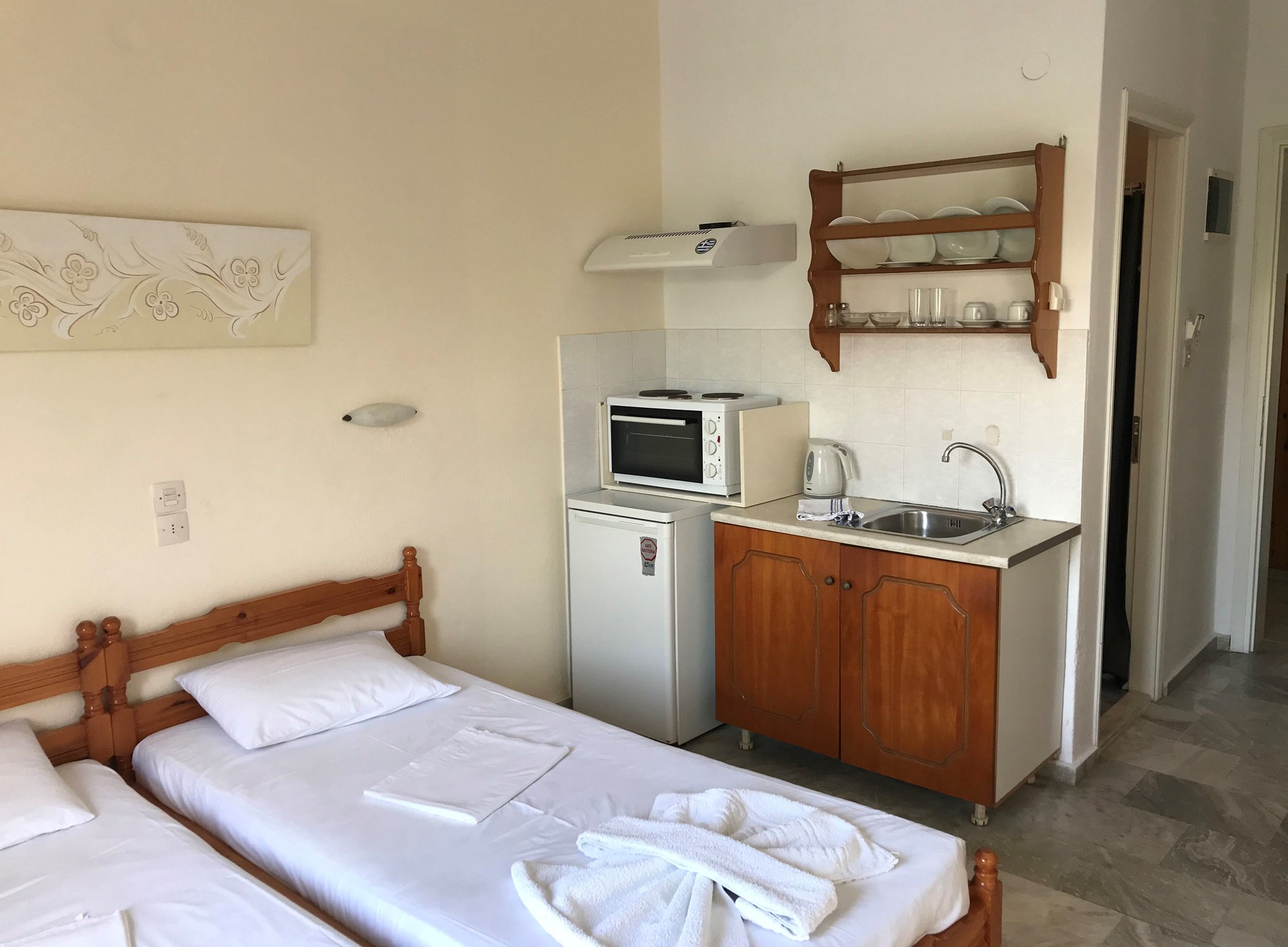 Кујните во сите студиа се опремени со основен прибор за подготовка на лесни јадења.