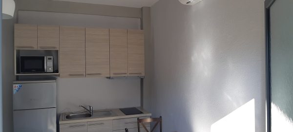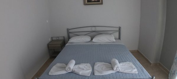 Втората спална соба има два кревети на спрат, + дополнителен кревет за дете до 12 год. кујна опремена со кујнски инвентар и плакар за алишта, клима уред. И од двете простории се излегува на сопствено дворче.