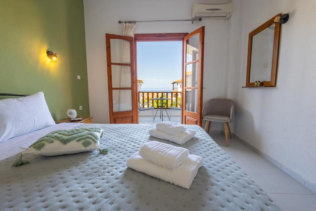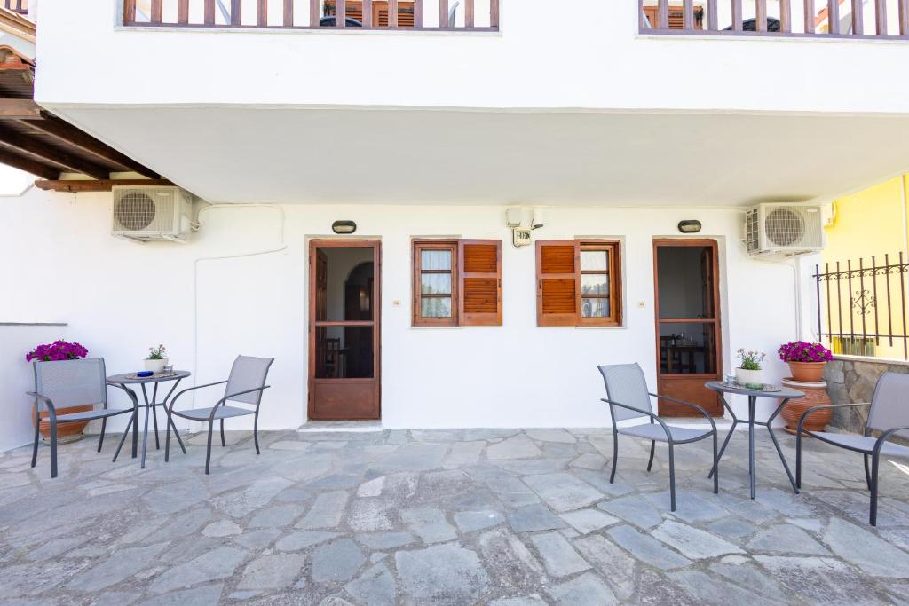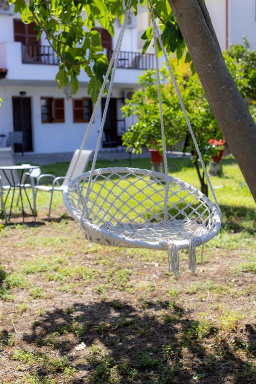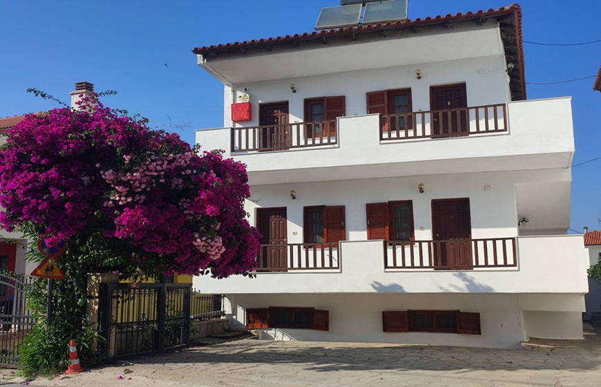 Новоизградена куќа (мај 2025 година) во срцето на најубавото место на Халкидики, модерни студија со пространи широки терари и директен поглед на море, голем убаво уреден двор во зеленило со лежалки и друштвен дел, сопствен затворен паркинг. Посебна кујна која е одвоена од спалната соба, опремена со мини шпорет, кафемат, апарат за вода, тоалет со фен, пешкири и постелнина кои се менуваат во текот на престојот. Клима и интернет вклучени во цената.